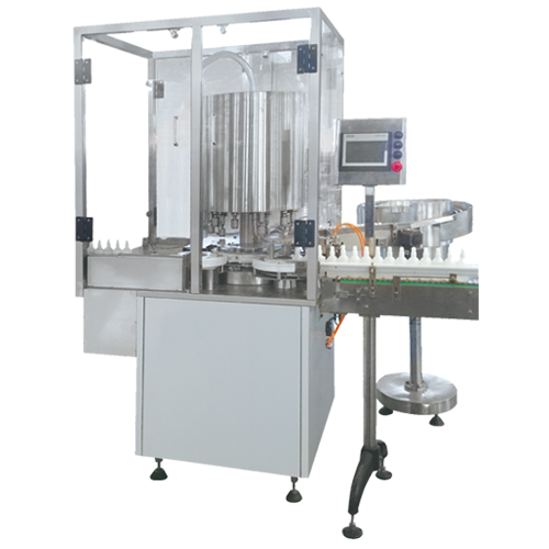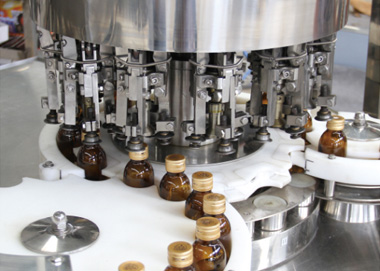 本機符合“GMP”要求,適用於各種(zhǒng)規格的玻璃瓶、塑料瓶的灌裝、上蓋、封口。是液體灌裝生產線中的主機。