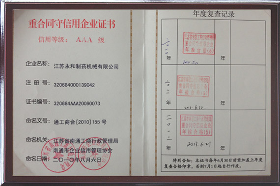 被海門市人民政府評為“質量信得過企業”、“YONGHE”商標被(bèi)南通市工商行政管理局(jú)評為知名商標