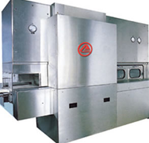 整機與瓶(píng)接觸部分均用不鏽鋼製造。隧道中輸瓶網帶采用(yòng)日本三菱變頻(pín)調速。整機PLC控製,觸摸屏全過程動態監視,熱(rè)風循環溫(wēn)度自動控製並記錄,操作方便。
